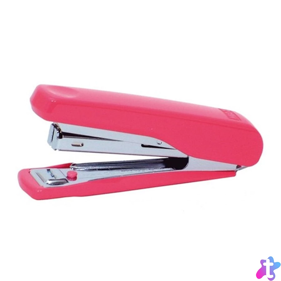 Krómacél testű, színes műanyag borítású tűzőgép, dupla nagyságú kapocstárral, beépített kapocskiszedővel, és könnyen kezelhető töltési mechanikával