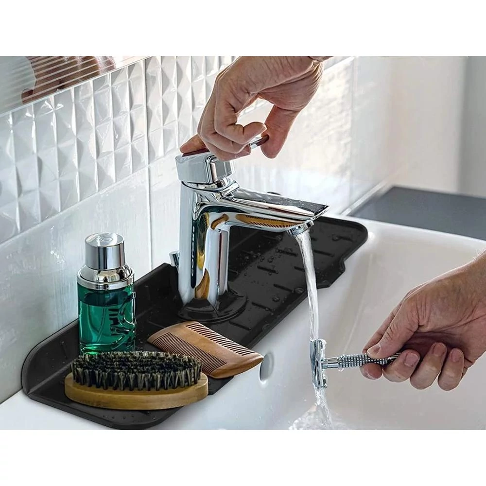 Termékünk speciális, körbetekerhető kialakítással rendelkezik, amely tökéletes a csap körül történő elhelyezéshez, tisztán és szárazon tartja a mosogatópultot. Azonnal felfogja a kifröccsenő vizet, és megakadályozza a víz felhalmozódását. A gumihátlap megakadályozza, hogy víz folyjon alá. Kevesebb, mint egy óra alatt megszárítható a levegőn, nincs szükség gyakori tisztításra, csupán néhány percet vesz igénybe a mosogatószeres tisztítása.