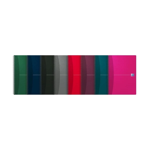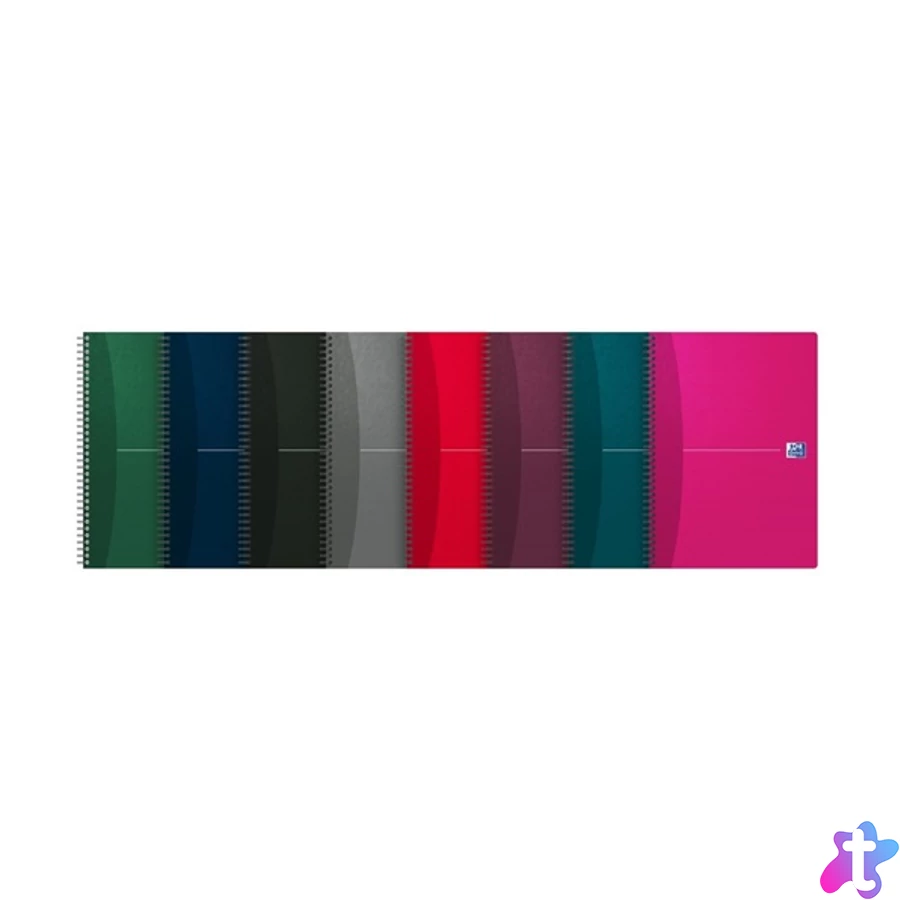 - Oxford Essentials A4 méretű, 90 lapos, vonalas, ikerspirálos jegyzetfüzet, hat klasszikus színben, hófehér belívvel, fejléccel, margóval, műanyag bevonató kartonborítóval.