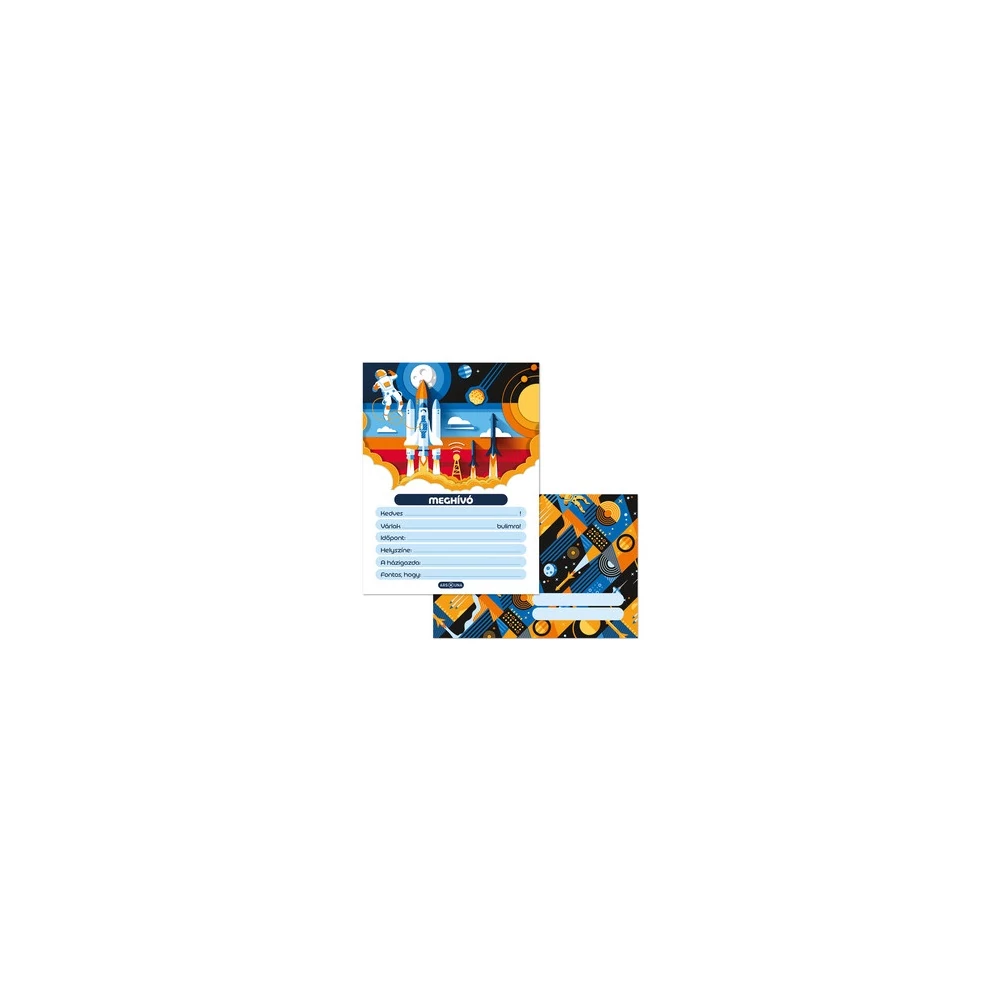 13 db különböző alkalomra használható partimeghívó lap és 10 db C/6 méretű, hozzáillő mintájú boríték egy csomagban. 80 gr-os, szép fehér ofszet papírra, négy szín nyomással készült. Golyóstollal és filccel is írható. Felakasztható, négy színnel nyomott fejléccel. A boríték postai szabványnak megfelelő méretű. Hiteles tájékoztatás: Elkötelezettek vagyunk termékeink biztonságának garantálásáért, nyomon követjük a termékbiztonsággal kapcsolatos valamennyi európai uniós és hazai szabályozást és biztosítjuk termékeink azoknak történő megfelelését. Az EU 2023/988-as számú Általános Termékbiztonsági Rendeletét (GPSR) is alkalmazzuk, így ha a termékeink biztonságát illetően fogyasztóként kérdése, észrevétele van, vagy esetleg balesetről van tudomása, kérjük, írja meg nekünk. GPSR: Ars Una Studio Kft., H-1113 Budapest, Csetneki u. 13.,webshop@arsuna.hu, https://arsuna.hu/