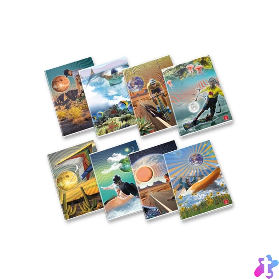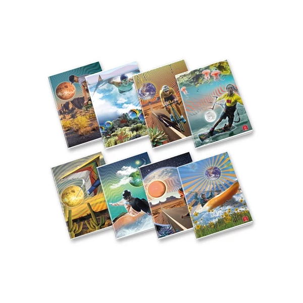 - A Dream Sport füzetcsalád borítódizájnja sportmotívumokat ötvöz szürreális, dinamikus vizuális elemekkel.