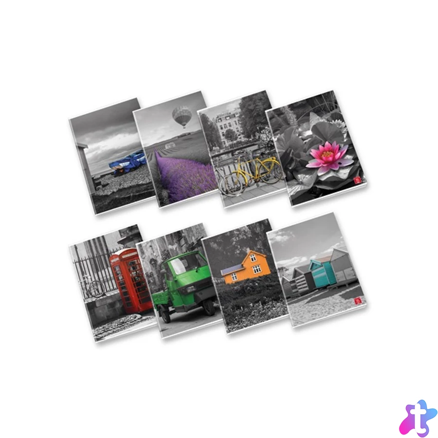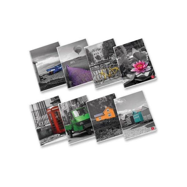 - A Touch of Color füzetek egyedi borítóin fekete-fehér fotók jelennek meg élénk színkiemeléssel, így különleges vizuális élményt nyújtanak