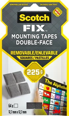 A Scotch-Fix™ eltávolítható ragasztó négyzetek kiválóan alkalmasak poszterek, plakátok, naptárak, céges kimutatások üvegre, falra, bútorra történő felragasztásához.