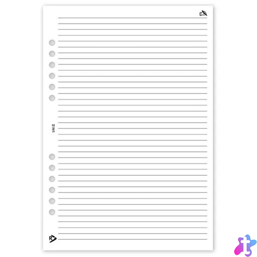 Vonalas jegyzetlap 1/412, fehér papíros, 30 lap/csomag. Lapméret: 146x210 mm (L)