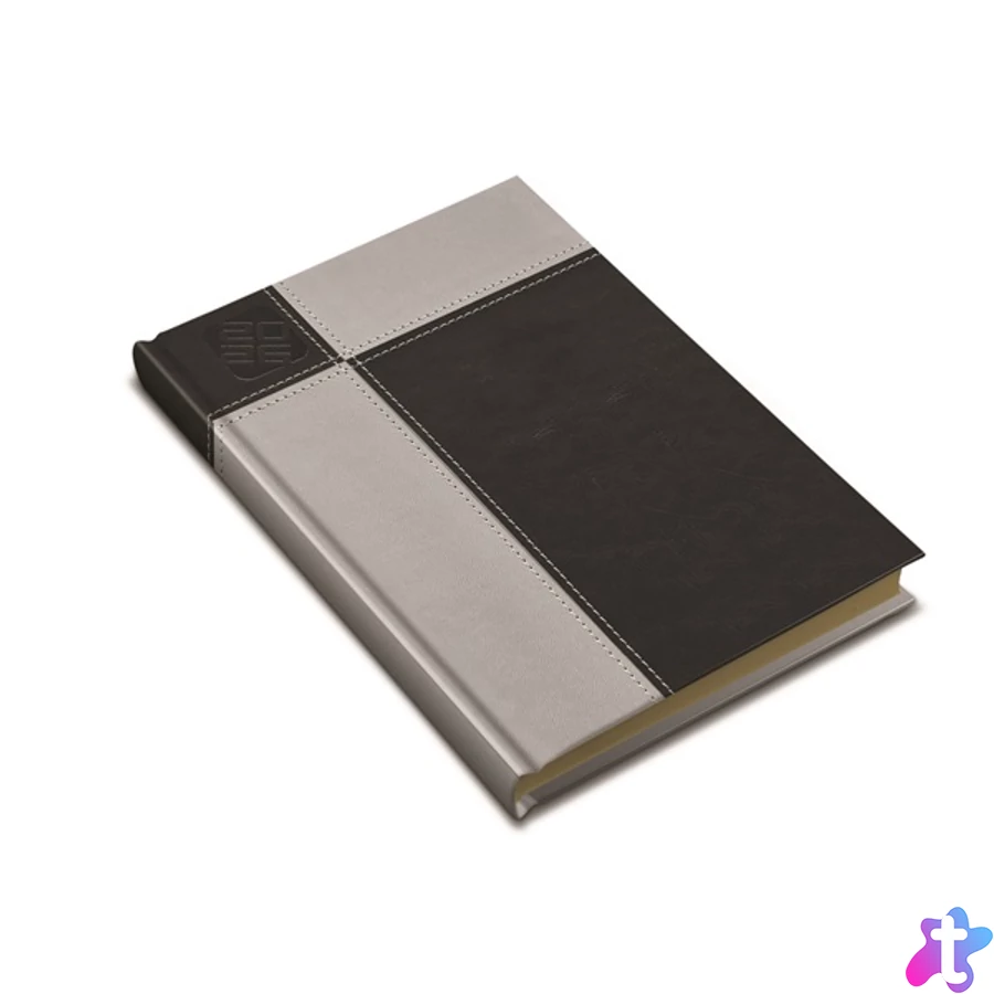 Exkluzív műbőrök, egyedi varrással, jelzőszalaggal és sarokperforációval. B5 heti beosztású, 144 oldal, 13 hónapos, cérnafűzéssel, 70 g-os chamois papírral. Egyediesítés: vakdombor, fémsarok (arany/ezüst). Méret: 165x240 mm