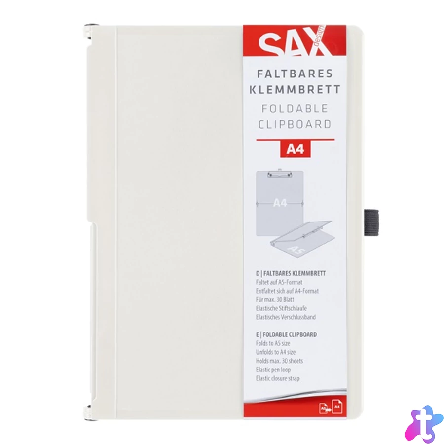 - A5 méretre összehajtható, A4 méretre kihajtható, rugalmas rögzítőpánttal, tolltartóval felszerelt irattartó.