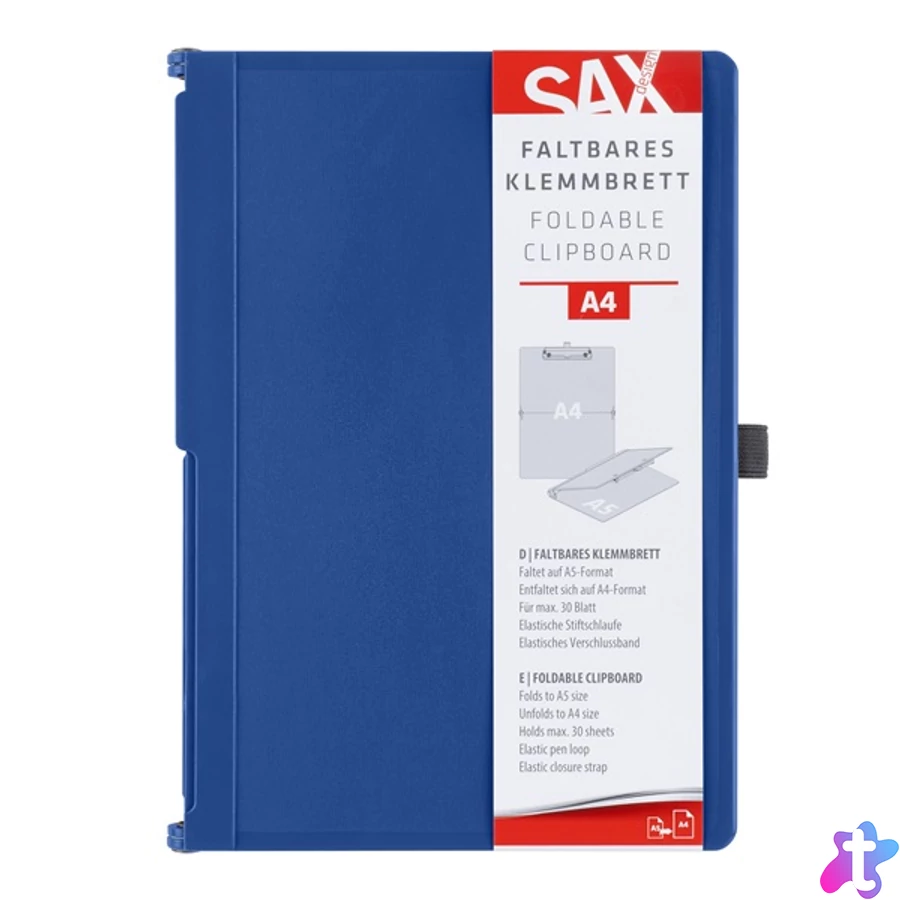 - A5 méretre összehajtható, A4 méretre kihajtható, rugalmas rögzítőpánttal, tolltartóval felszerelt irattartó.