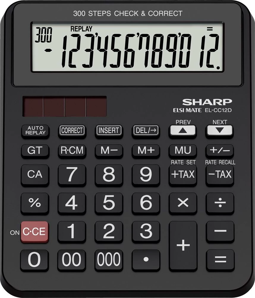 Kijelző: 12 számjegyes, döntött LCD - Tápellátás: napalem és LR44 elem - Automatikus kikapcsolás: igen - Tartós, nagyméretű műanyag gombok - Méretek: 132 x 166 x 30 mm - Tömeg: 169 g - Szín: fekete - Csomagolás: papírdoboz Funkciók: - ÁFA hozzáadás / levonás - Memória kezelés: 3 gomb - Dupla nullás gomb (00) - Tripla nullás gomb (000) - Ezres elválasztó megjelenítés - Százalék (%) gomb - Előjelváltás (+/-) - Értékjavítás (->) - Végösszeg (GT) - MU - haszon számítás - Kikapcsolás után, számítás folytatása - 300 lépéses memória: folytatólagos számítás esetén, előzmény sorok javítása, kiegészítse, új művelet és számítás beillesztése - Egyszerű számítási folyamat ellenőrzés: automata visszajátszás funkció és léptető gombok segítségével