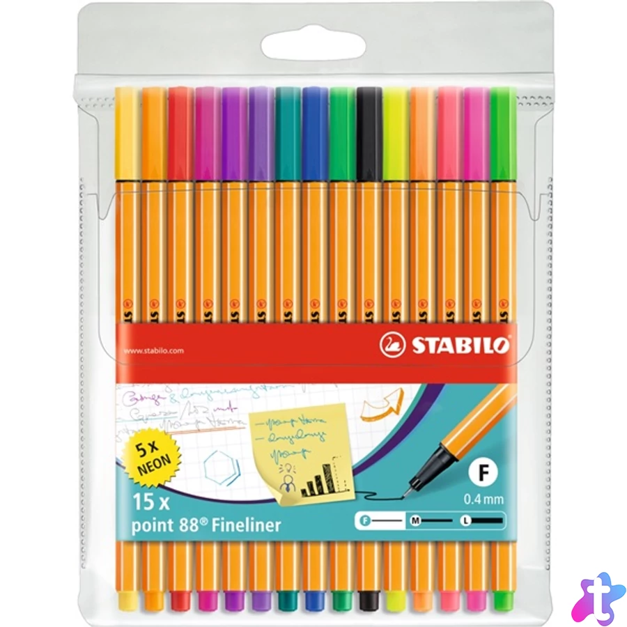 Tűfilc készlet, 0,4 mm, STABILO "Point 88 Zebrui", 15+5 különböző szín