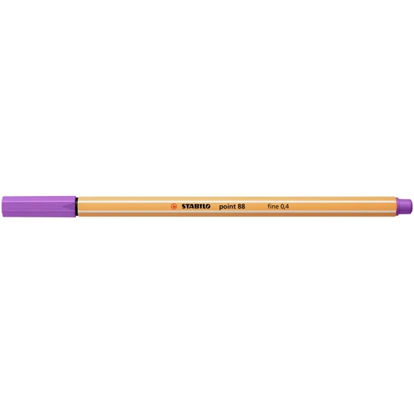 A STABILO point 88 az Európában kapható legnépszerűbb tűhegyű filc. A híres hatszögletű tolltestnek köszönhetően kényelmesen fogható. Vízbázisú tinta, fémfoglalatú hegy, 0,4 mm-es vonalvastagság..