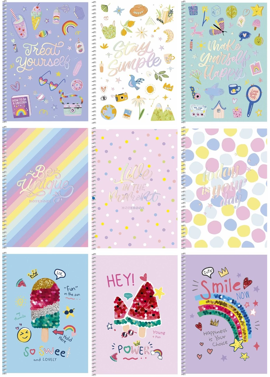 Spirálfüzet, A5, kockás, 80 lap, SHKOLYARYK, színes minták, vegyes