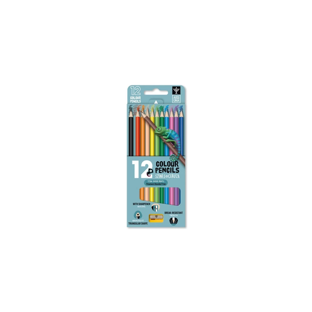 Színes ceruza készlet, háromszögletű , hegyezővel Ars Una 12 klf. szín,
