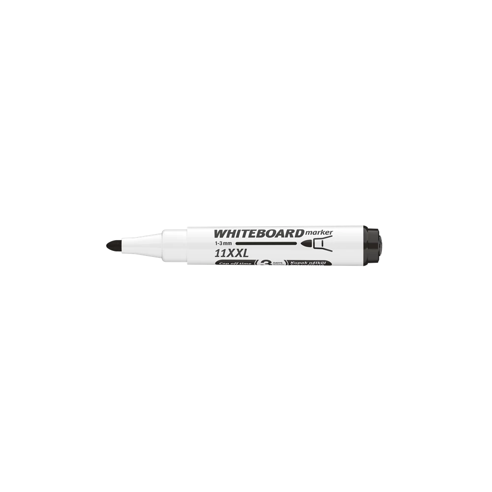 Fehér táblára való írásra, rajzolásra alkalmas marker."Cap-off" festékkel töltve, ezért néhány napig kupak nélkül sem szárad be. Az írás szárazon letörölhető. Megnövelt élettartam a nagyobb méretű testnek köszönhetően. Kerekített csúccsal .. Vonalvastagság: 3 mm. 10DB/DOBOZ Katalóguskód: 20189