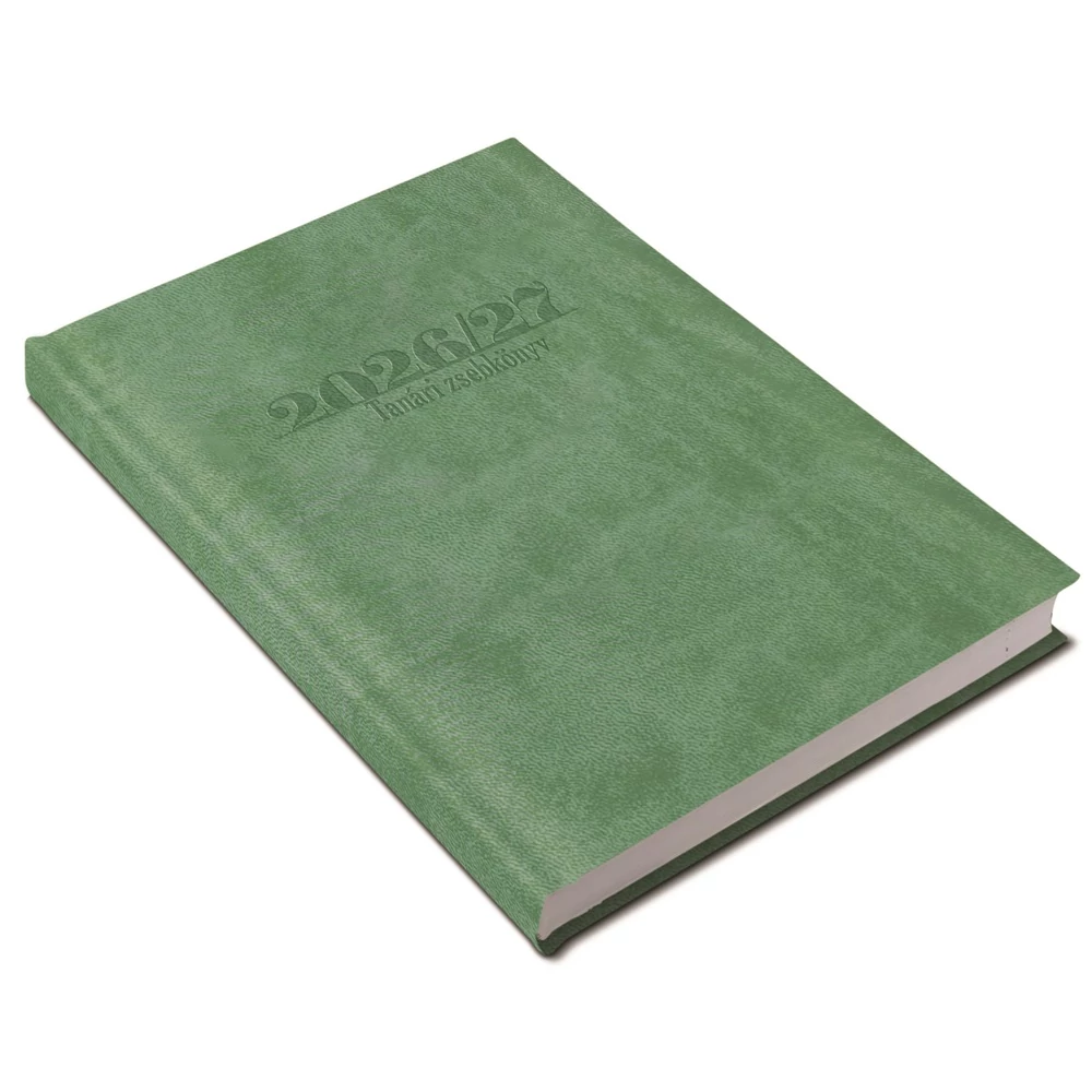 Tanári határidőnapló A5, műbőr 150mmx210mm, fehér lapokkal világoszöld 2026/2027 Realsystem