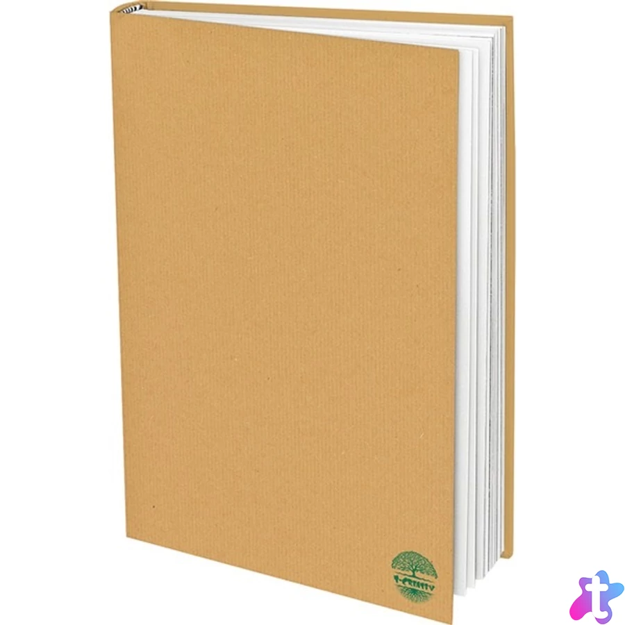 - Keménytáblás, natúr kraft borítás, cérnafűzött, A4-es méretű, 96 oldalas napló.