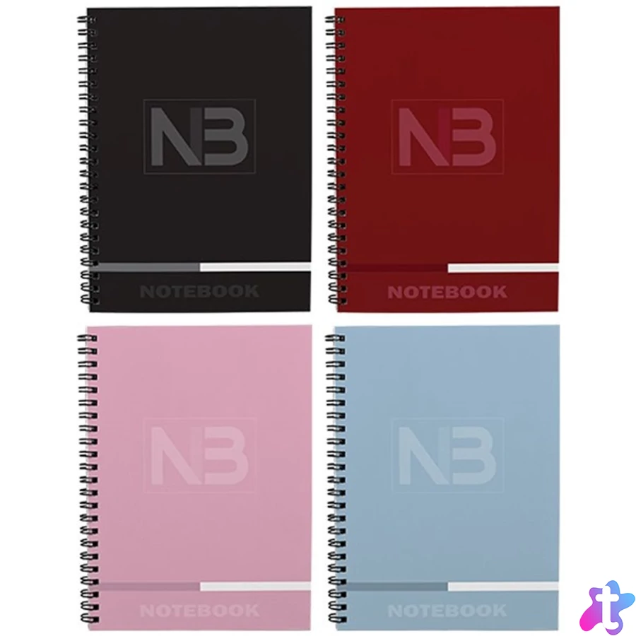 400 gr-os színes ofszet karton borító, bársony fólia + UV lakk. Három színregiszter, ikerspirálozva, mikroperforált és lyukasztott lapok. 70 g-os hófehér ofszet belívek, a lapok vonalazásának színe megegyezik az adott oldal színregiszterének színével. A füzet színe nem választható!