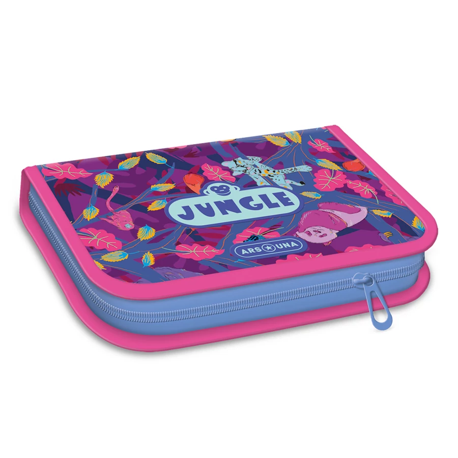 Írószerekkel töltött cipzáros tolltartó két kihajtható füllel, gumis kialakítással az írószerek tárolásához. Tartalma: 12 db színes ceruza, 3 db HB grafit ceruza, 1 vékony és 1 vastag postairón, 8 db színes filctoll, 1 db radír, 1 db hegyező, 1 db 17 cm-es egyenes vonalzó, 1 db háromszög vonalzó, órarend A és B hétre.