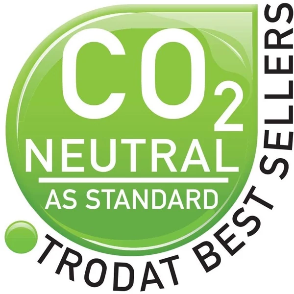 Nem hagy ökológiai lábnyomot. A gyártás során 100%-ban megújuló enegiaforrásokat használnak fel. A termékek méretének csökkentésével a gyártás és szállítás folyamán kevesebb energiaforrás szükséges. A megjelölt termékek 65%-ban újrahasznosítható anyagból készültek, illetve a felhasználást követően is újrahasznosíthatóak. A gyártási folyamat során szükségszerúen keletkezett CO2 kibocsátást, a Trodat a WWF által javasolt - Gold Standars Climate Protection Project - klímavédelmi projektbe történő befektetéssel egyenlíti ki.