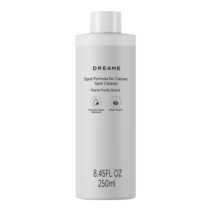 A szőnyegtisztítóval hatékonyan távolíthatja el a szálakba mélyen beágyazódott szennyeződéseket, például cipőnyomokat, kiömlött italokat és háziállatok piszkát. A terméket a Dreame H14 Dual / H14 Mix / H15 Mix / H12 Dual FlexReach /H13 Dual FlexReach álló porszívókhoz fejlesztették ki. A flakon kapacitása 250 ml.