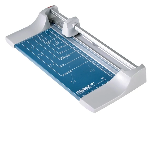 Kör alakú pengével és fém talppal ellátott vágó. Forgópenge műanyag házban, automatikus nyomás, cm és DIN formátumú skálák. Papír, címkék, fényképek és fóliák vágására alkalmas.