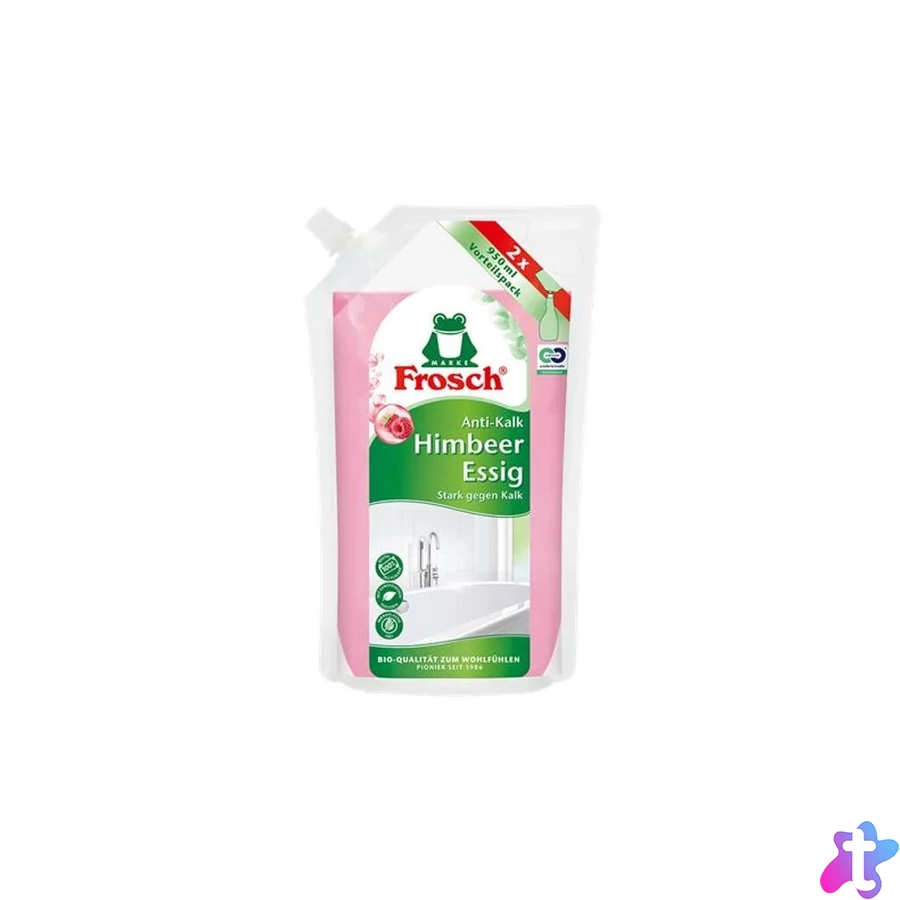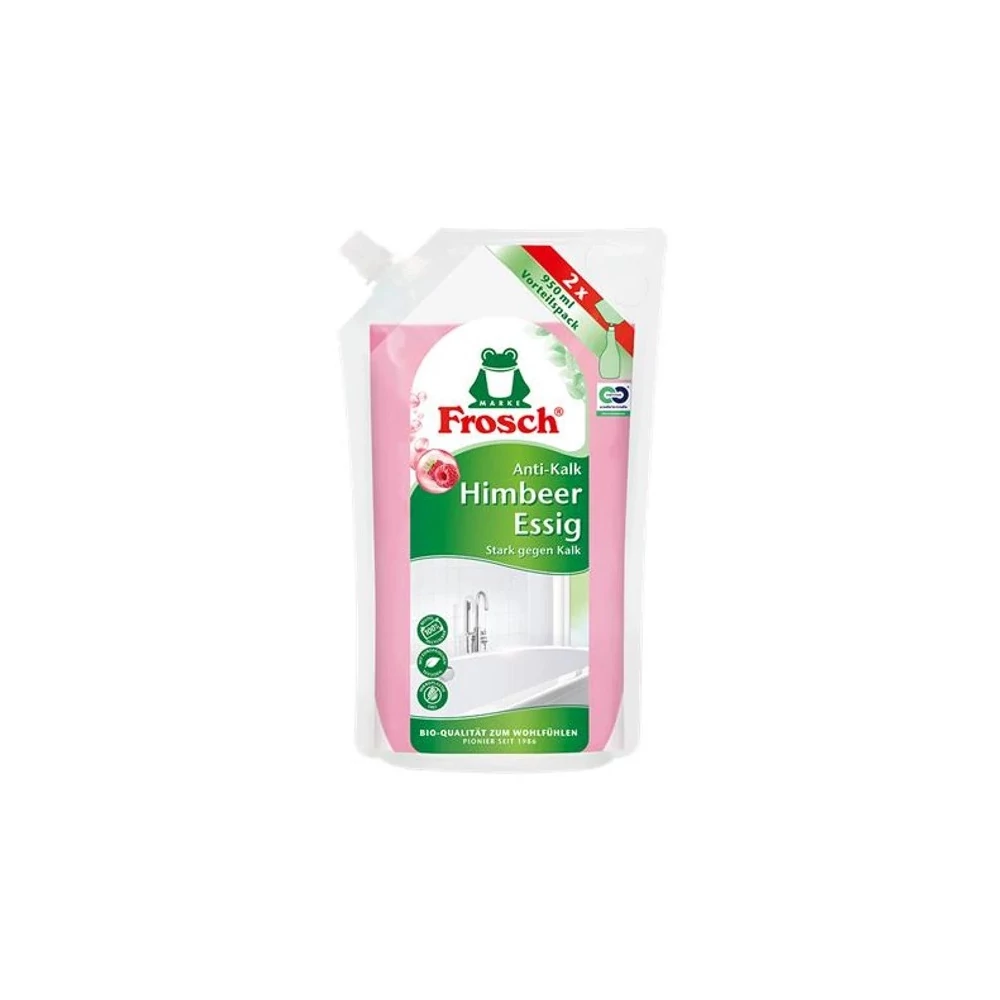 Vízkőoldó utántöltő 950 ml Frosch Málnaecettel vízkőoldó hatású tisztítószer zuhanyzók, fürdőkádak, mosdókagylók és csempék takarításához. Málnaecet tartalmával hatékonyan távolítja el a makacs vízkőfoltokat és szennyeződéseket; csíkmentes, csillogó felületet biztosítva. Kellemes, friss málna illatot hagy maga után.