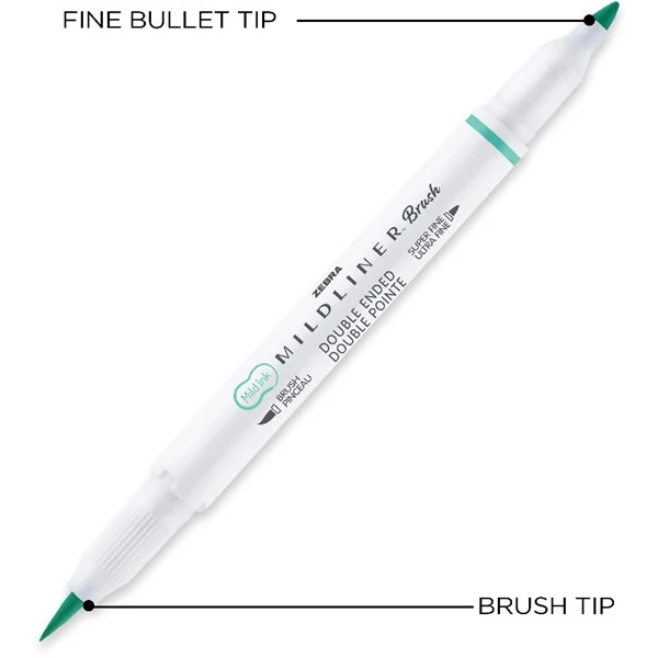 A Mildliner Brush&Marker kettős végű marker, ecset végű és extra vékony kerek heggyel (0,5-4,0 mm). Tintája vízálló, nem fakul, arhiválásra alkalmas.